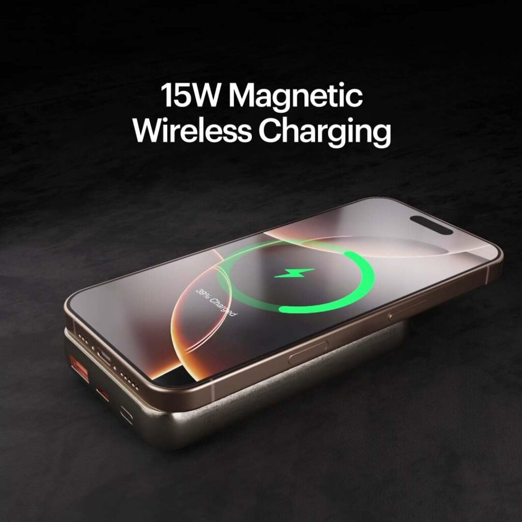 The first thing I noticed is how slim and compact this powerbank is, especially for a 10,000mAh capacity. It feels lightweight yet sturdy in hand, making it perfect for travel, daily commutes, or even keeping in your pocket without bulkiness. The matte finish gives it a premium touch and prevents fingerprints. The magnetic feature is well-engineered – it securely attaches to compatible iPhones and MagSafe cases without slipping off. This ensures a hassle-free wireless charging experience.http://www.amazon.in