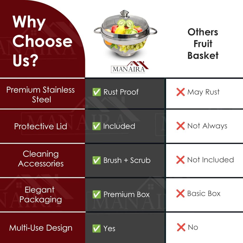 For those who appreciate quality craftsmanship, the Manaira 12 Inch Fruit Basket truly delivers exceptional value for money. The packaging was secure, and it arrived without any dents or scratches. I was impressed by the brand’s attention to detail – even the edges are smooth, so there’s no risk of scratches or snags while handling.http://www.amazon.in