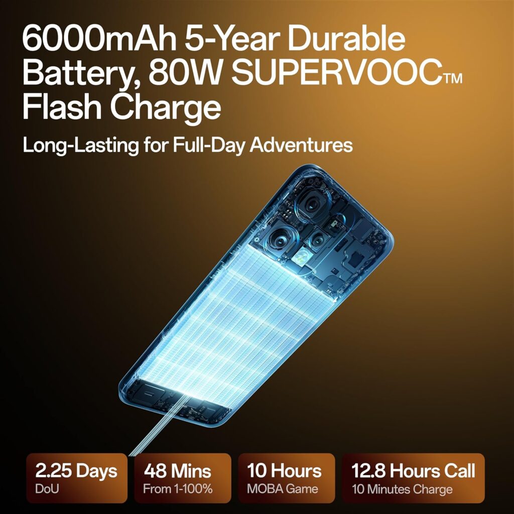 Battery life is exceptional with its 5000mAh battery, easily lasting a full day of heavy use. The 67W SUPERVOOC fast charging is a game-changer — charging the phone from 0% to 100% in less than 45 minutes! This feature alone makes it an ideal companion for busy professionals and travelers.http://www.amazon.in