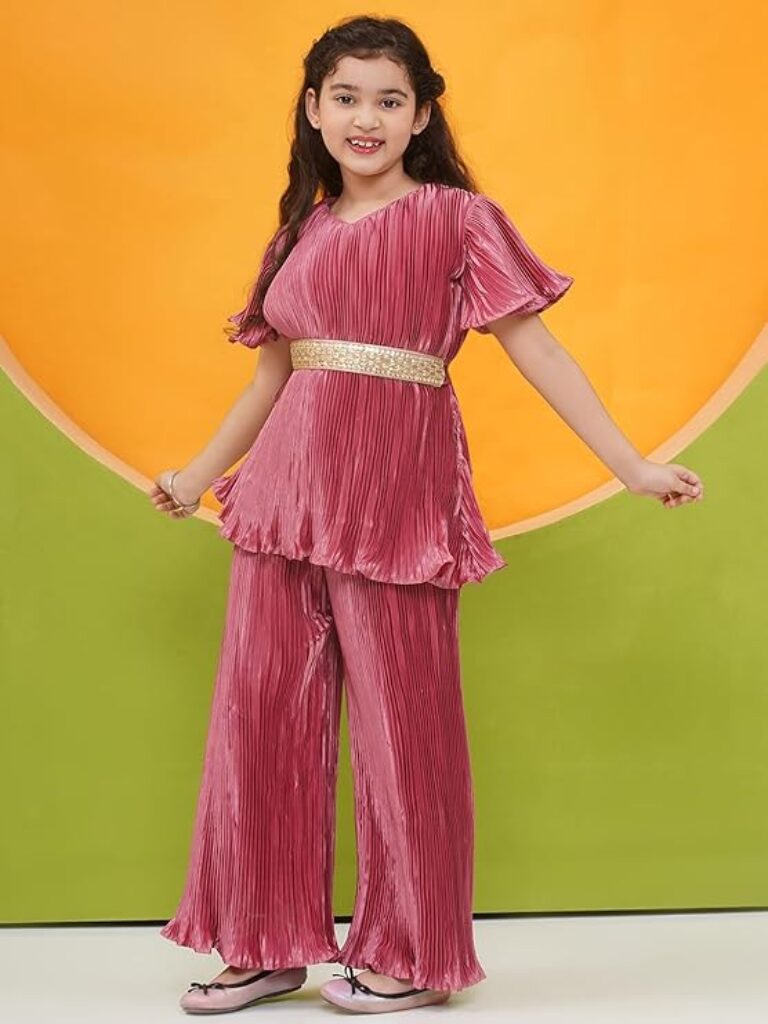 The design and fit are equally commendable. The top features a modern yet classy silhouette that looks graceful on young girls. The coordinated bottom complements it beautifully, giving a neat, put-together look. The inclusion of a matching belt is a thoughtful touch—it not only adds to the aesthetic appeal but also allows for an adjustable fit around the waist. My daughter loved the belt detail as it made her feel “grown-up” and fashionable. The dress fits true to size, and the brand’s size guide on Amazon was accurate, helping us make the perfect choice without any hassle.http://www.amazon.in